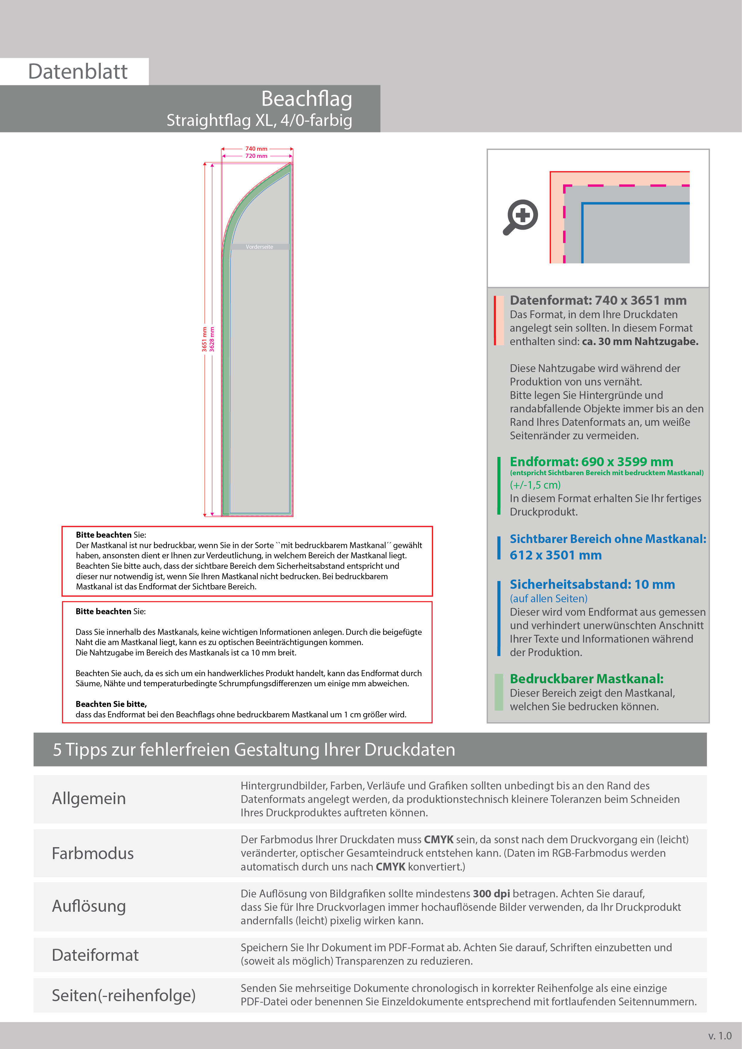 Beachflag Premium-Straight XL, 4/0-farbig bedruckt inkl. Gestänge und 12-kg-Metallbodenplatte