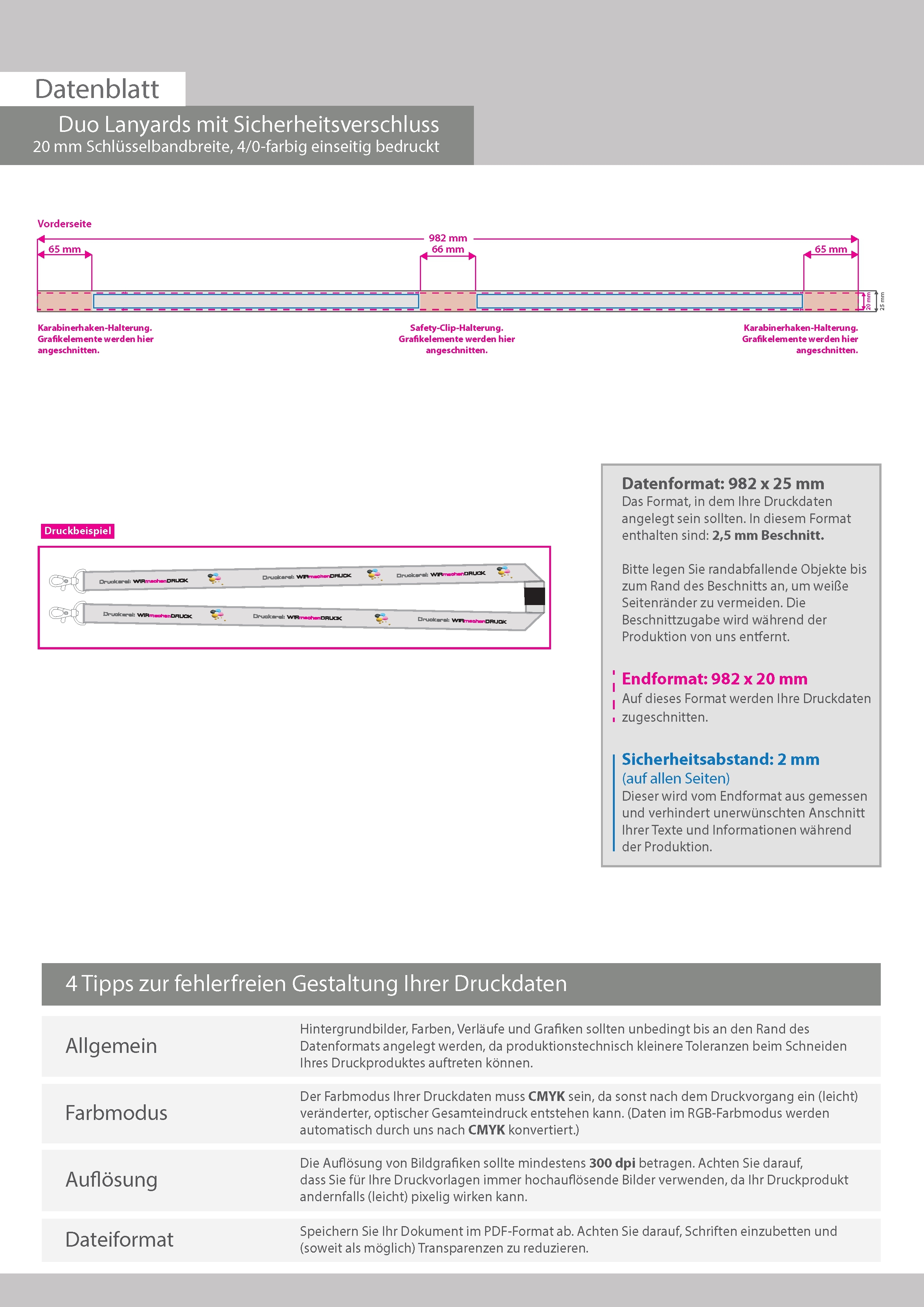 Duo-Lanyards mit Sicherheitsverschluss, 20 mm Schlüsselbandbreite, 4/0-farbig einseitig bedruckt