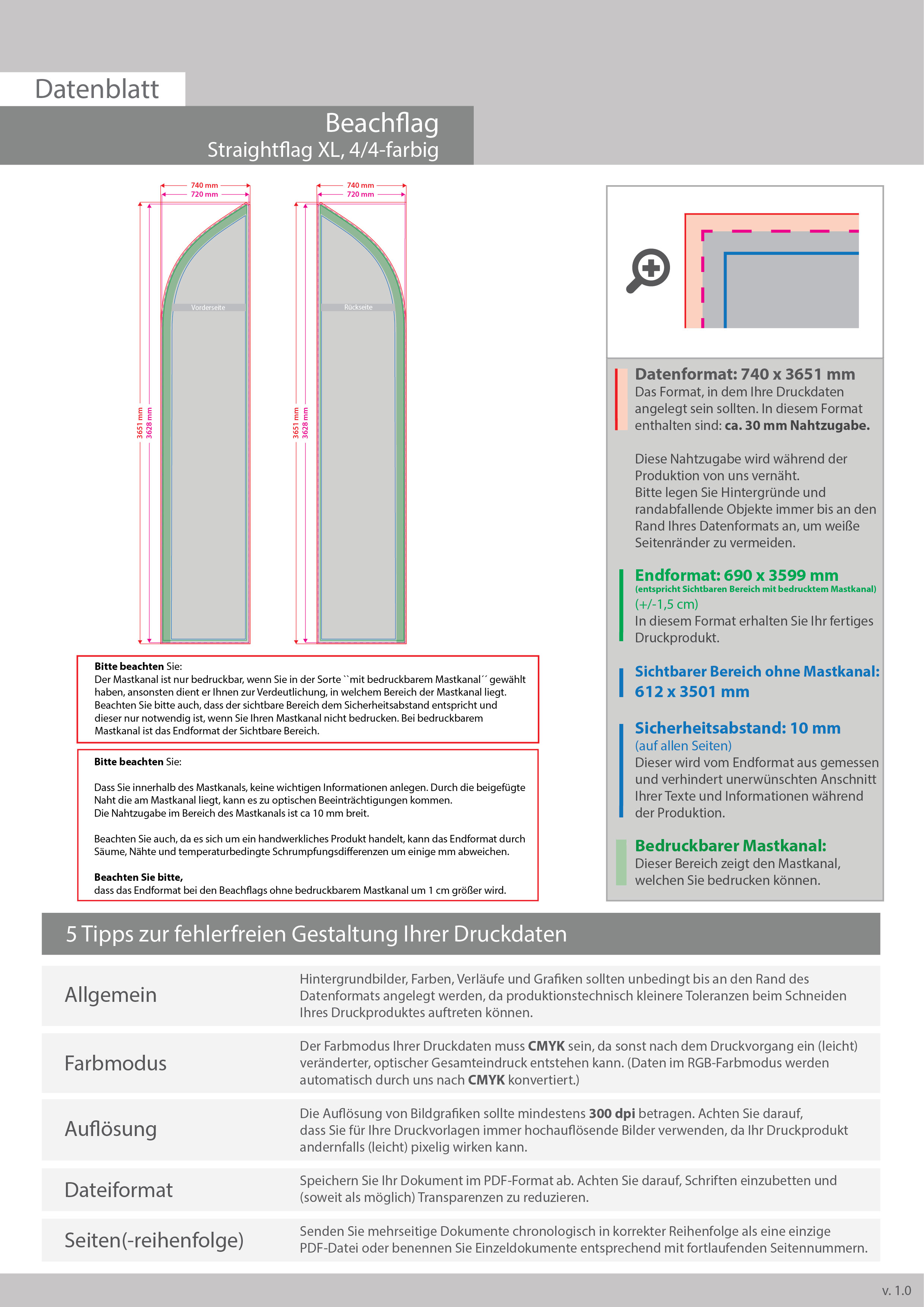Beachflag Premium-Straight XL, 4/4-farbig bedruckt inkl. Gestänge und Erdspieß (80 cm Länge)